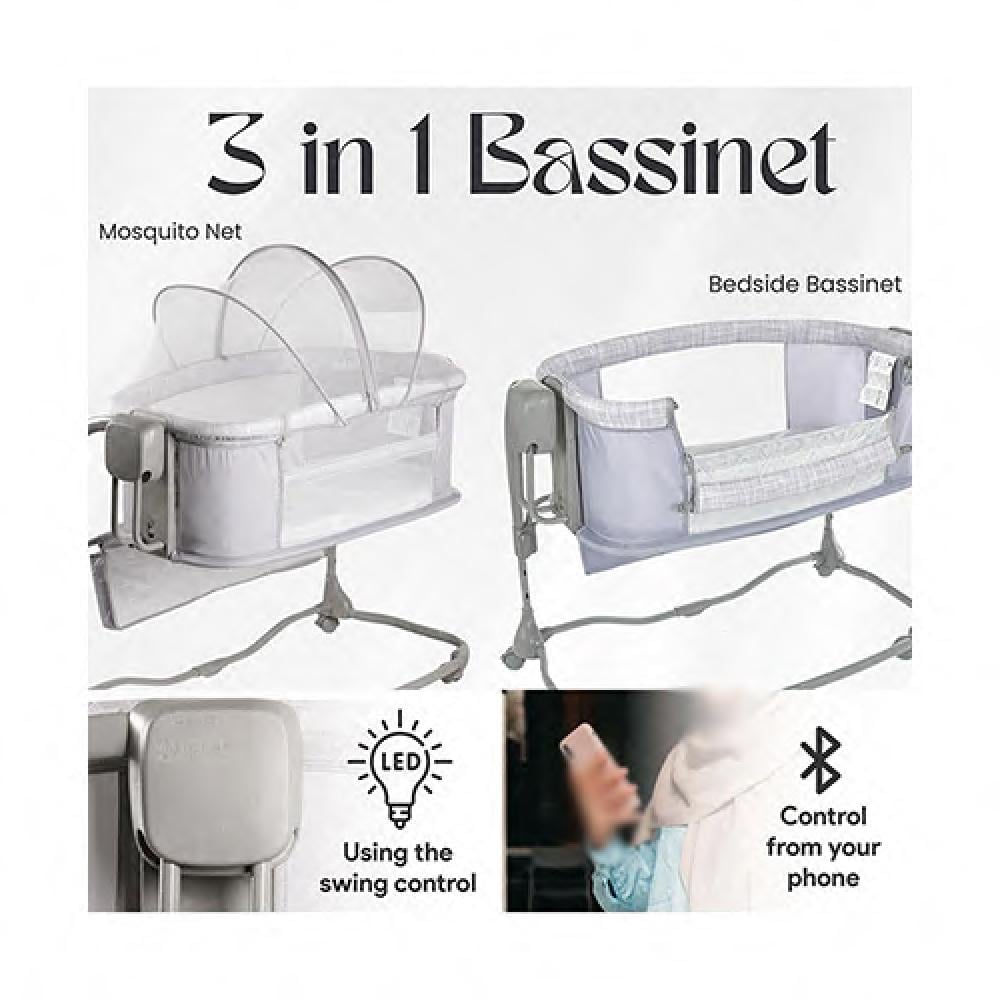 سرير أطفال متعدد الوظائف 3 في 1 استمتعي براحة كاملة مع هذا السرير الفاخر المصمم خصيصًا لتلبية احتياجات طفلك من الولادة وحتى مراحل نموه المختلفة. يتميز بتصميم متعدد الوظائف 3 في 1، حيث يمكن استخدامه كسرير جانبي، أرجوحة هادئة، أو سرير مريح للنوم. مناسب للأطفال من عمر 0 أشهر فما فوق
