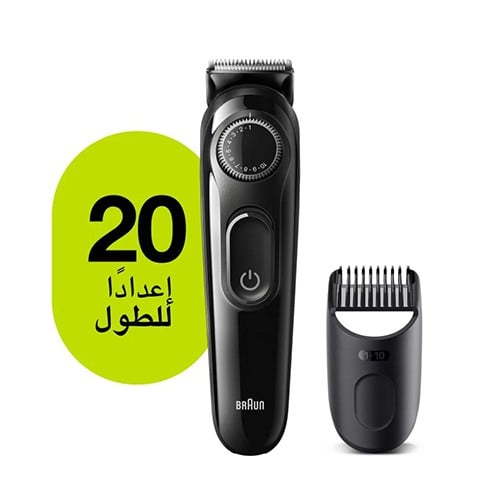 مشذب اللحية من براون مع شفرة حلاقة جيليت فيوشن برو جلايد أكثر حدة وأسرع وأكثر كفاءة مقارنةً بجميع الأجيال السابقة من ماكينة حلاقة اللحية من براون قرص دقيق للاختيار من بين 39 إعدادًا للطول بأحجام 0.5 ملم لتجربة حلاقة بدون مجهود تاتي بشفرات حادة حادة تدوم مدى الحياة من أجل تشذيب شعر اللحية وتقليم الشعر بشكل متساوٍ. تقنية ألمانية وتصميم مريح، لما يصل إلى 80 مرة من التشذيب بدون سلك