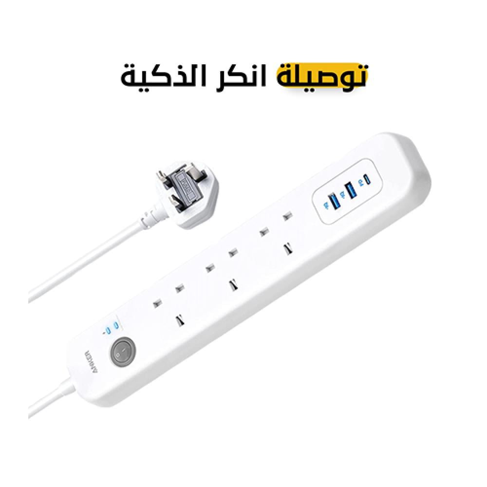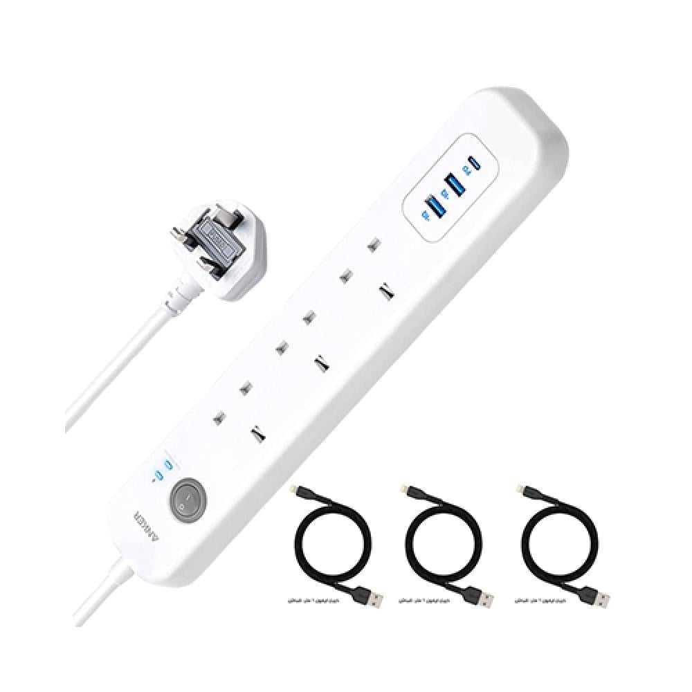 مشترك كهربائي (وصلة كهرباء) من أنكر بمنفذ USB-C بقدرة 61 واط احصل على توصيل طاقة متكامل وموثوق مع توصيلة أنكر الذكية، التي توفر لك 3 منافذ تيار متردد (AC)، ومنفذين USB، ومنفذ PD لشحن سريع وفعال. مزودة بسلك بطول 2 متر، مما يمنحك راحة ومرونة في الاستخدام، بالإضافة إلى 3 كيابل من اختيارك لتناسب جميع احتياجاتك