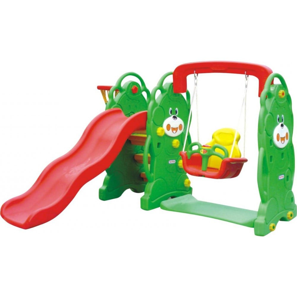 زحليقة الدب مع ارجوحة و طوق كرة سلةتجمع الزحليقة بين المرح والأمانلديها قاعدة واسعةلا توجد حواف حادة أو نتوءاتمقابض أمان قويةيمكن تجميعها وتفكيكها بسهولة